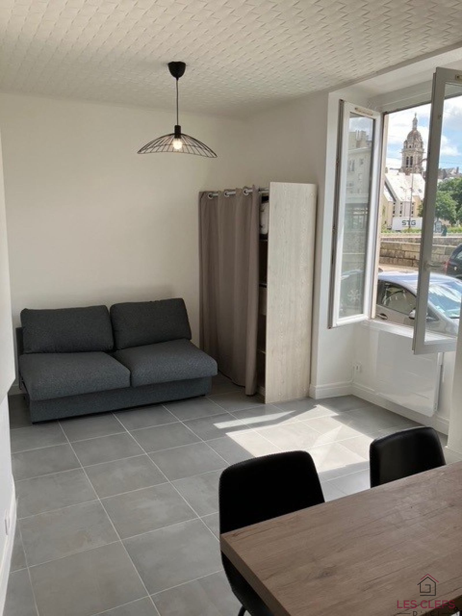Situé au rez-de-chaussée d’un petit immeuble de deux appartements, ce studio bénéficie d’une exposition sud-est et offre une belle vue sur la rivière, la Sarthe, avec le Pont Gambetta juste en face.