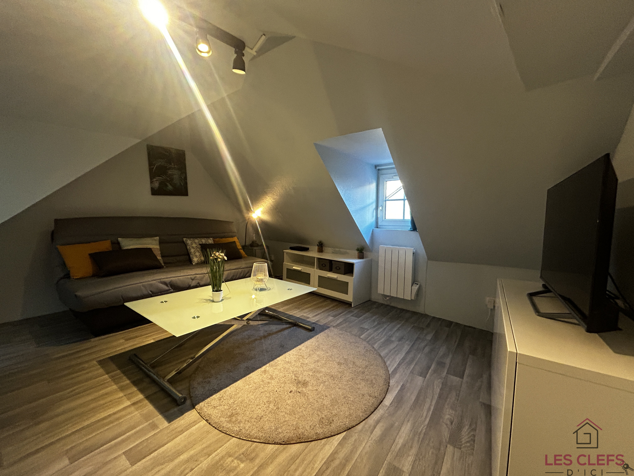Description du Bien : Ce Studio de 14m² se compose d’une pièce principale, équipée d’un canapé convertible avec un matelas épais qui est adapté à un usage quotidien, table, TV, commode, boitier fibre présent.