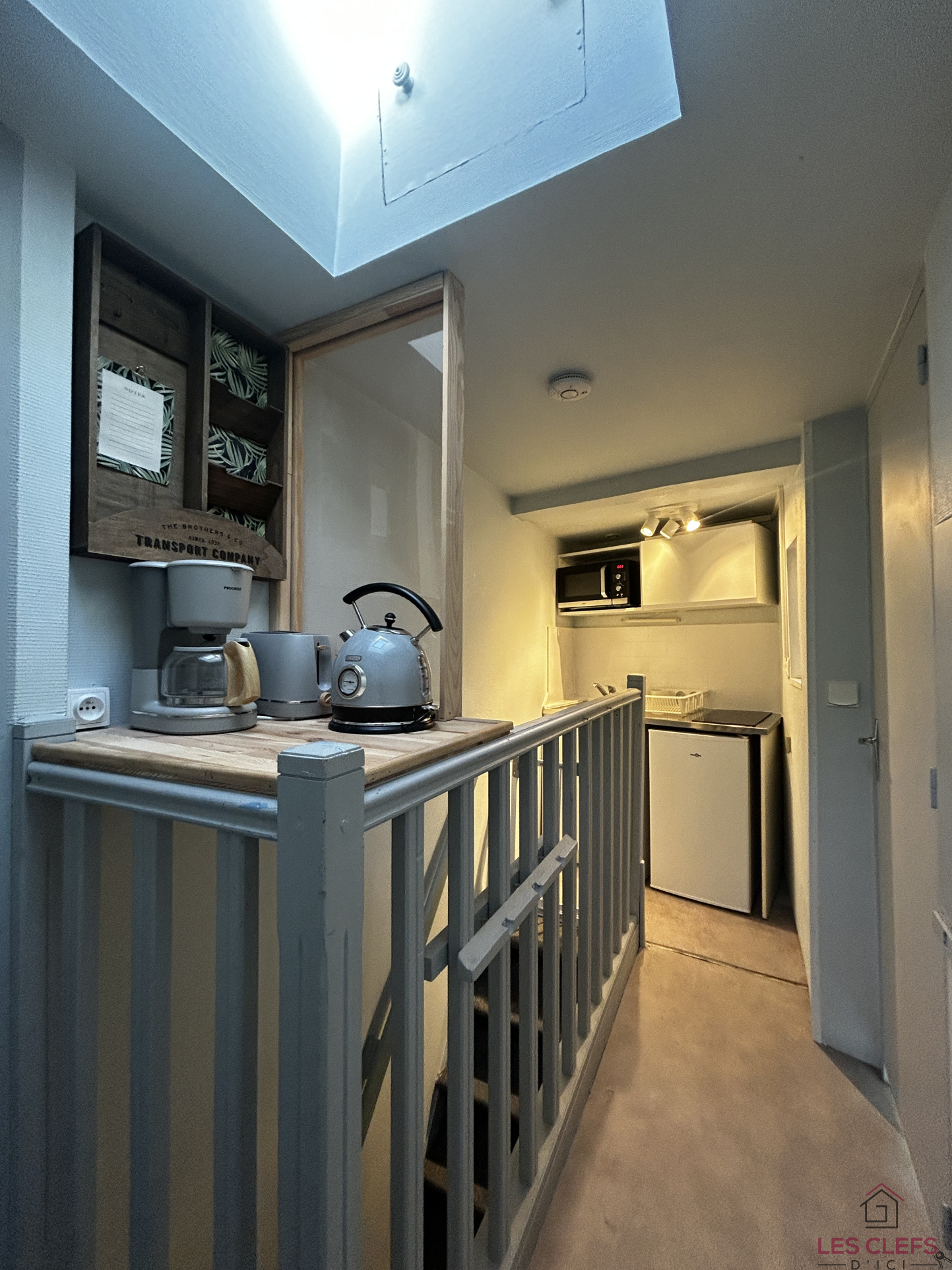 La cuisine, équipée aménagée, offre tout le confort nécessaire pour votre quotidien. Micro-onde, plaques de cuisson à induction 2 feux, Réfrigérateur/congélateur, ustensiles de cuisines et vaisselle.