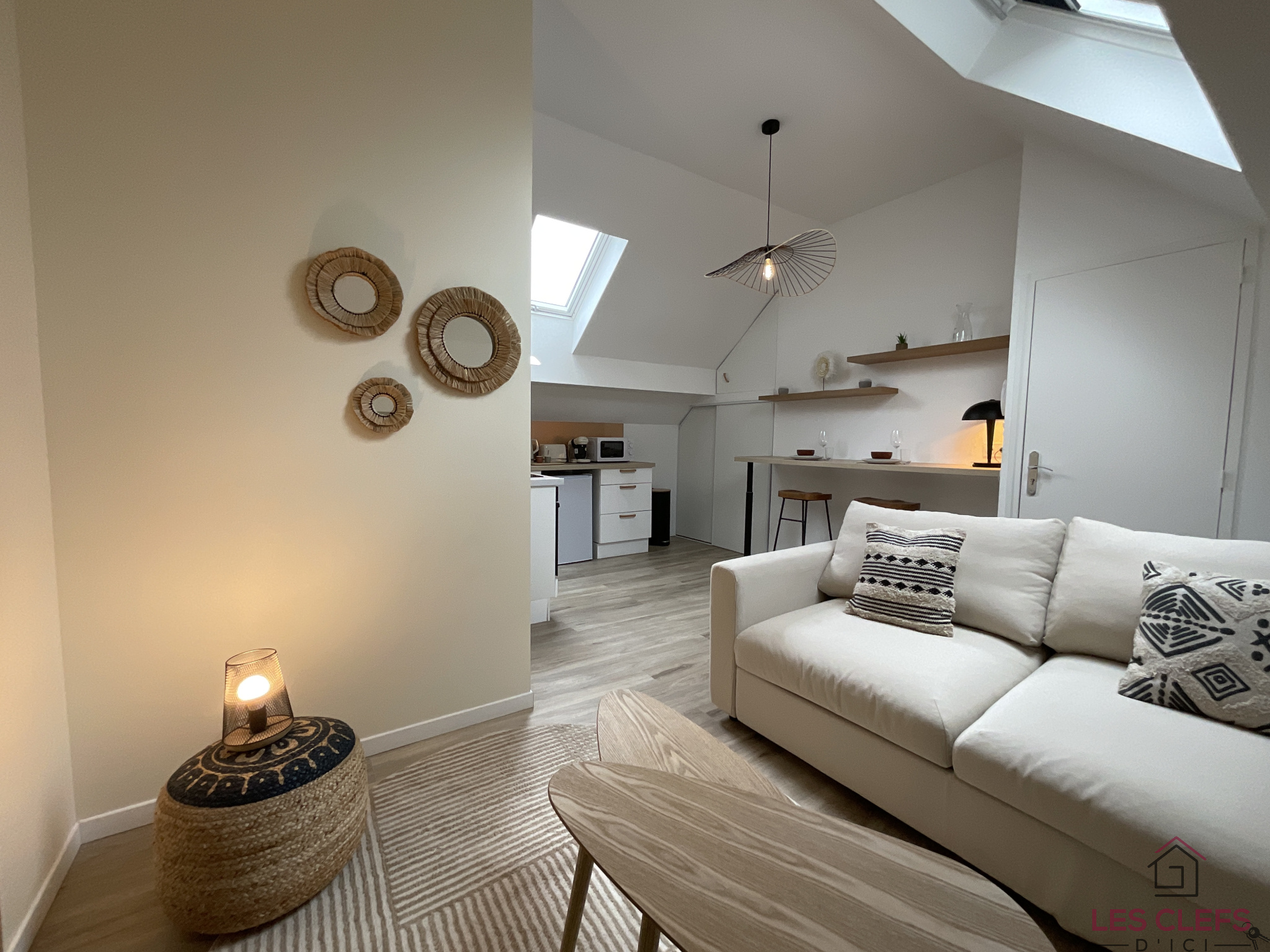 Description du Bien : Ce studio de 17m² se compose d’une pièce à vivre avec canapé-lit, TV, table et chaises.