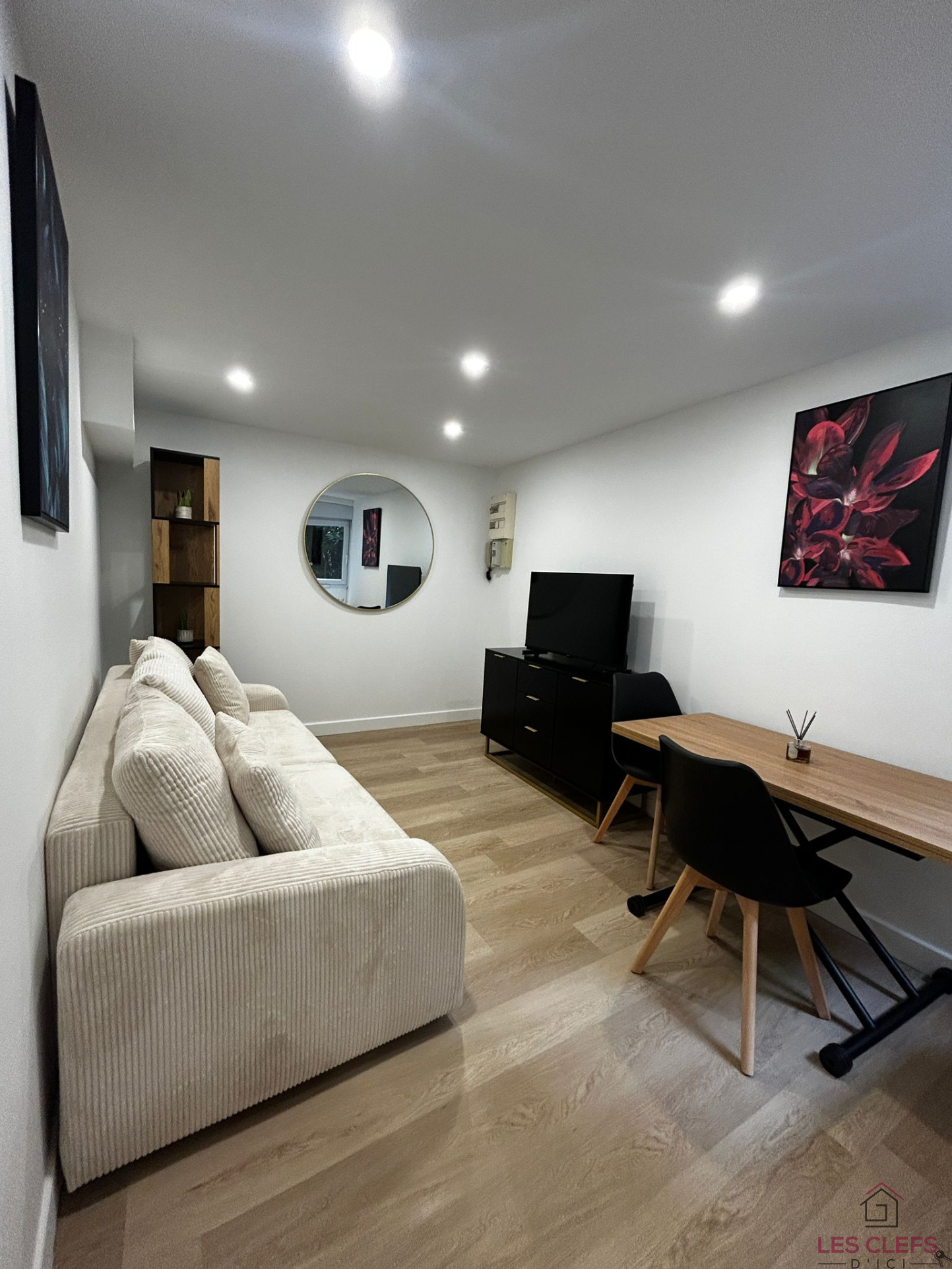Description du Bien : Ce studio de 15m² se compose d’une pièce à vivre avec canapé lit, TV, table et chaises.